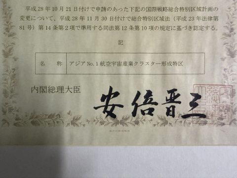 アジアNo.1航空宇宙産業クラスター形成特区は、欧米先進地域と肩を並べ、アジア等新興国の追随を許さない航空宇宙産業の一大集積地の形成を図るため、総合特別区域法に基づき国から指定を受けた国際戦略総合特区です。共進精工は内閣府よりアジアNo.1航空宇宙産業クラスター形成特区に認定された事業所になります。